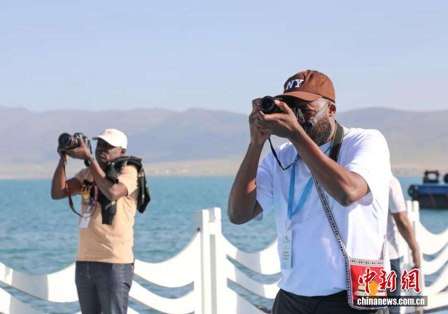 2025年9月13日,非洲青年在青海湖畔感受人与自然和谐共生。(图片来源:中新社)
