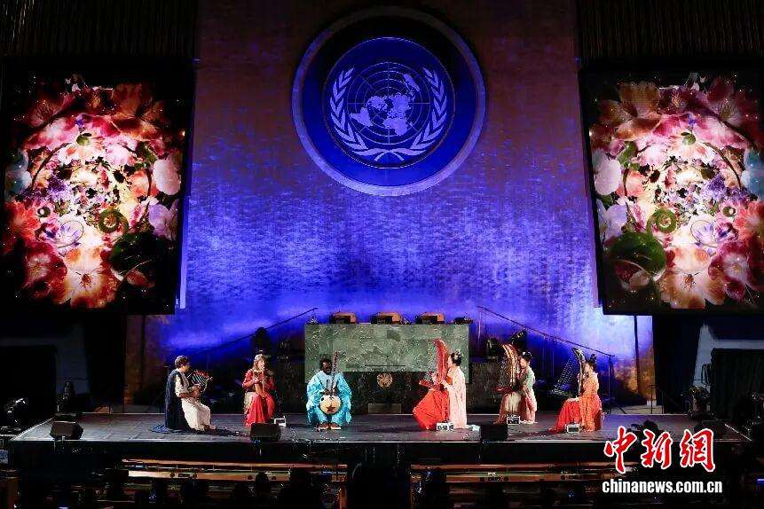 当地时间2025年6月9日,中国在纽约联合国总部举办“文明对话国际日”主题活动。图为来自中国、美国、希腊、塞内加尔的艺术家在“跨越山海的文明对话”文艺演出上表演器乐合奏《美美与共》。(图片来源:中新社)