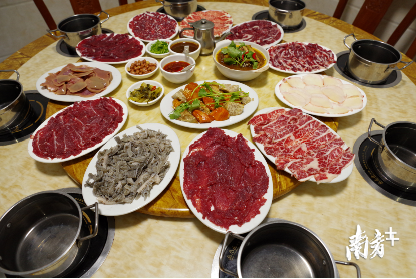 调养好的牛屠宰后,分割环节同样严格。一头千余斤的牛,最终能用于火锅的肉仅占三成左右,两成适合做牛肉丸,剩下的用于零售或供应给当地粿条店。“不是所有部位都适合涮煮,得挑肉质细嫩、筋膜少的部分。”潮州市兄弟餐饮管理有限公司负责人陈锐坚说,适合火锅的牛肉会细分为10多个部位,每个部位的风味、口感各不相同。