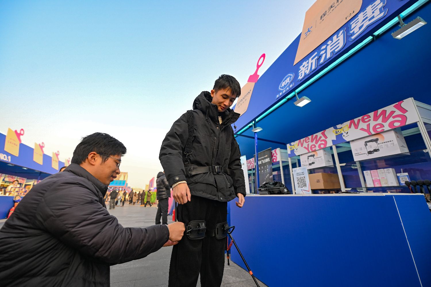 1月23日至27日,2026浙江新春消费季主场活动在杭州举行,8个主题展区的近300个品牌亮相。外骨骼机器人、智能眼镜、无人机等科技“新年货”吸引民众关注。(图片来源:中新社)