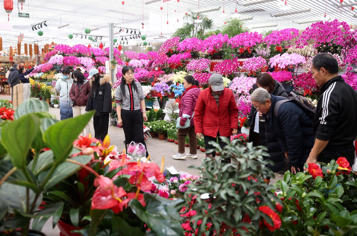 11日,民众在北京花乡花卉创意园采购年宵花,迎接中国农历新年。