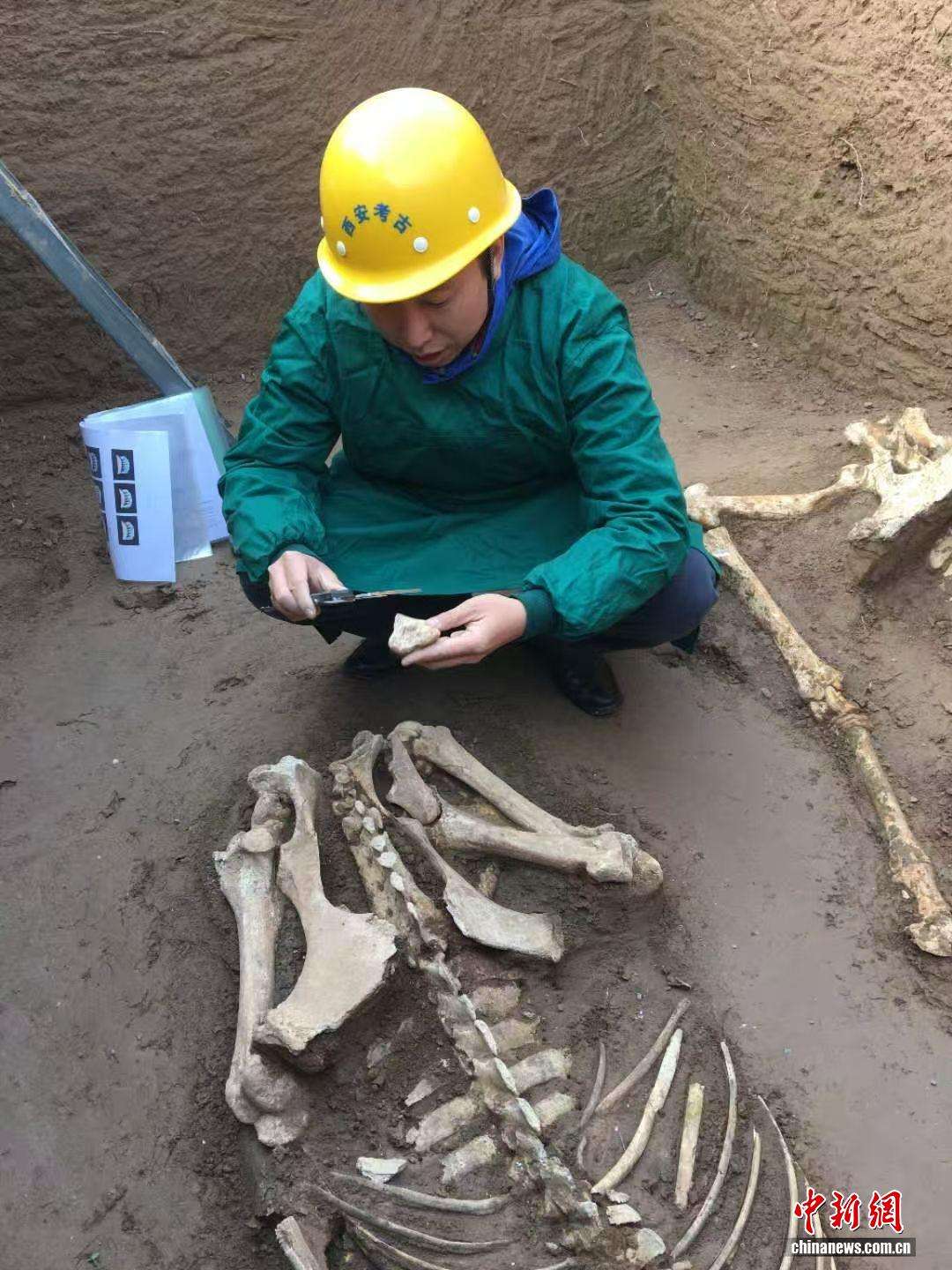 吕鹏在对陕西考古遗址出土马骨进行现场鉴定。