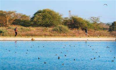 在肯尼亚内罗毕,中国企业为当地量身定制污水处理方案,中企修复扩建的内罗毕丹多拉污水处理厂成为多种鸟类的重要栖息地和公众环保教育的重要场所。图为当地居民经过丹多拉污水处理厂。