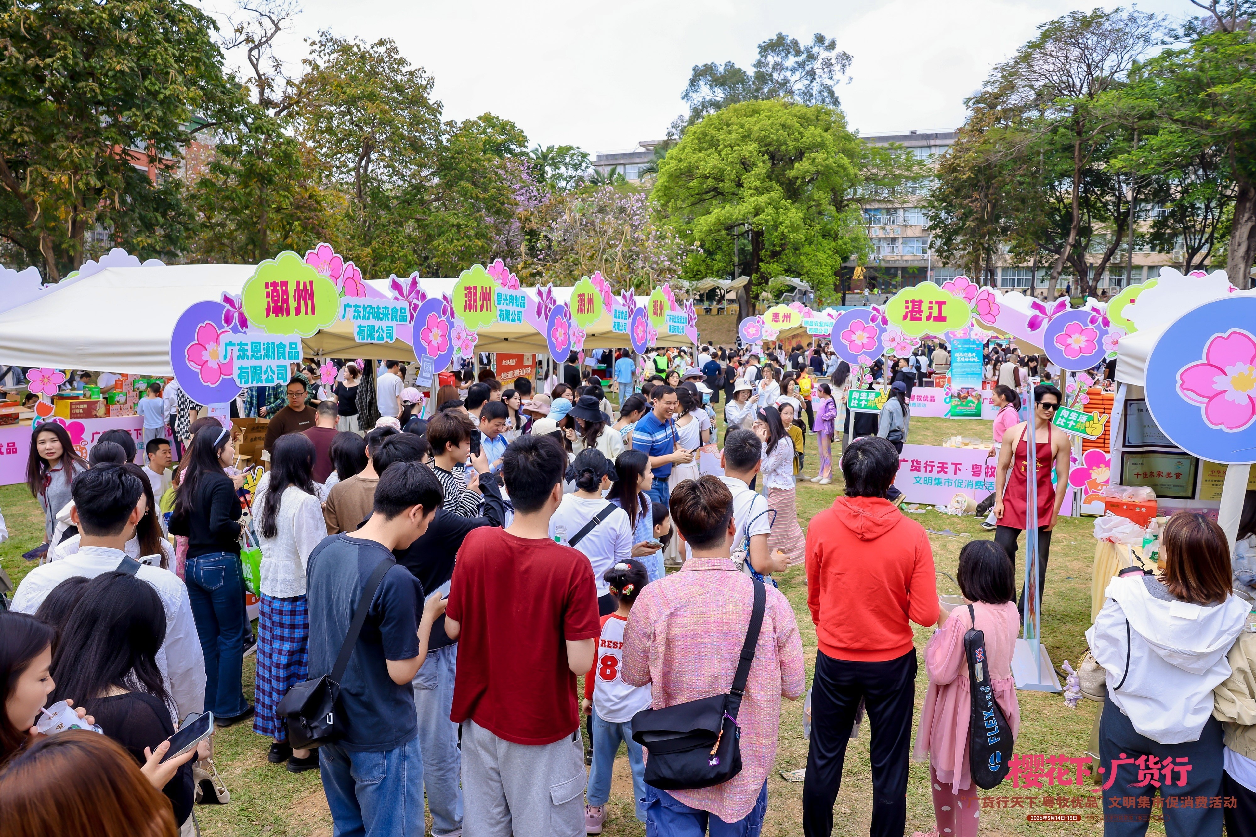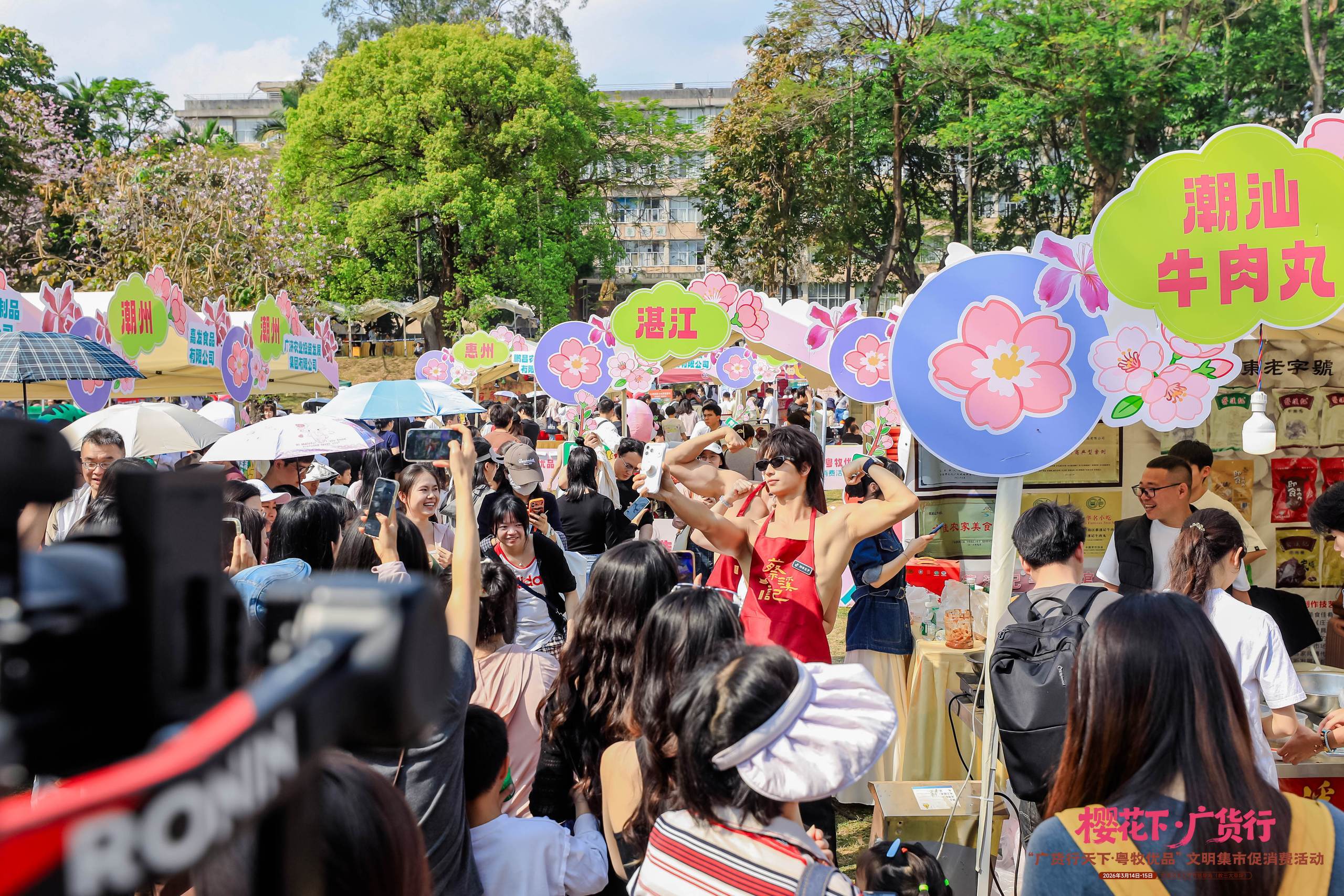 3月14日至15日,“广货行天下·粤牧优品”文明集市在华农校园举行,数万名市民走进这所校园,学生、校友、市民在花树下排起长队,买牛肉丸、尝土鸡、逛集市,热闹得像一场春日嘉年华。