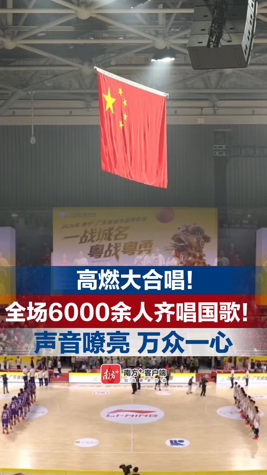 赛场里,全场6000余人齐唱国歌,声音嘹亮,激动人心。