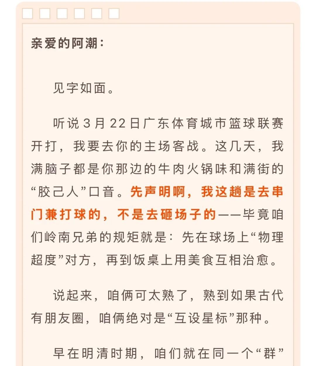 这届粤BA的“书信喊话”,像极了广东人的性格: