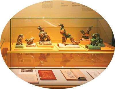 “几何·和谐·生活——安德烈亚·帕拉第奥:从古典到经典的建筑艺术”展中的中国传统建筑典籍与琉璃构件。