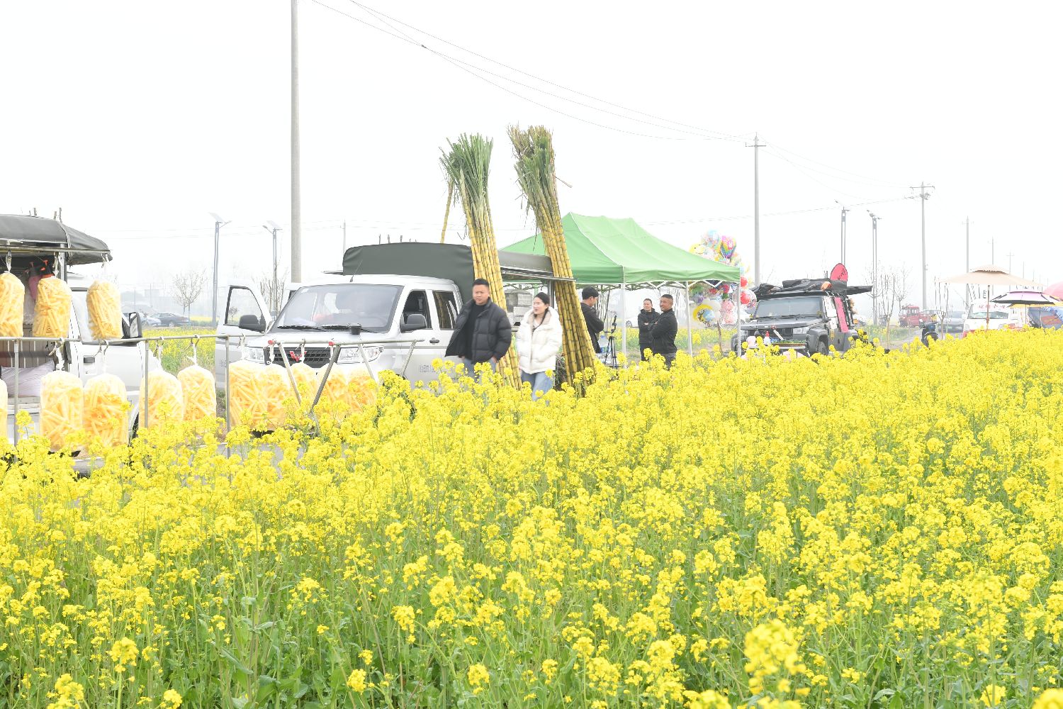 3月19日,游客漫步在六家畈文旅小镇周边的油菜花田。(图片来源:中新社)