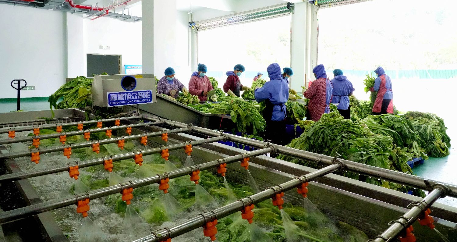 26日,在福建省龙岩市永定区现代特色农产品科技产业基地首栋厂房内,全自动化生产线有序运转,永定菜干依次完成清洗、漂烫、烘干等工序。