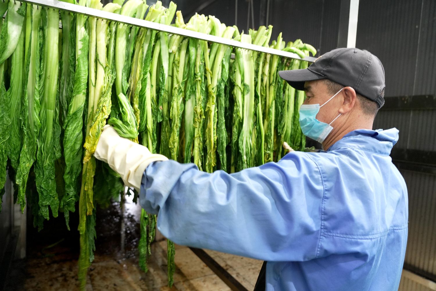 26日,在福建省龙岩市永定区现代特色农产品科技产业基地首栋厂房内,全自动化生产线有序运转,永定菜干依次完成清洗、漂烫、烘干等工序。(图片来源:本文图片均自中新社)