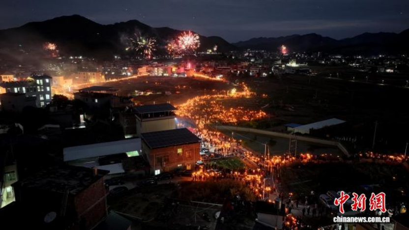 夜幕降临,华灯初上,正月十一追火炬龙活动如期上演。主办方特别增设香火龙表演环节,让市民游客提前领略非遗魅力。火炬龙与香火龙次第点亮,竹篾扎制的龙身缀满点点星火,舞龙者身着盛装、步伐矫健,腾挪翻转间尽显龙的威武灵动;火炬龙追火逐珠、穿村过巷,村民与游客手持竹筒火把紧随其后,连成千米长队,锣鼓声、欢呼声、鞭炮声交织在一起,回荡在夜空中,星火映红整片夜空,勾勒出一幅充满烟火气与乡土味的客家民俗画卷,将新春的喜庆氛围推向高潮。