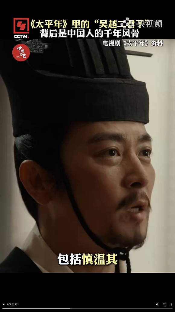 电视剧《太平年》总导演杨磊:水丘昭券劝谏的时候,包括慎温其在跟六郎对话,不卑不亢。他觉得作为一个士大夫,我可以为国家做事情,我也可以去为挖湖泥的工人洗脚。这就是中国的文人、士大夫。你可以看出观众对他们的喜爱,是油然而生的那个爱,我觉得这是中国人骨子里的又善又忠。他还有他自己的学术,他有他自己的观点,他还要去告诉自己的君主,要用自己的知识去纳谏。慎温其(的后人)跟着钱弘俶一块儿“纳土归宋”去了北宋为官,也是个清廉的官,然后到了宋朝为官之后呢,他们又回到了南方老家,回到湖州,还有一支去了韩国,甚至有现在他们慎氏(后人)从韩国到湖州来寻亲认祖。