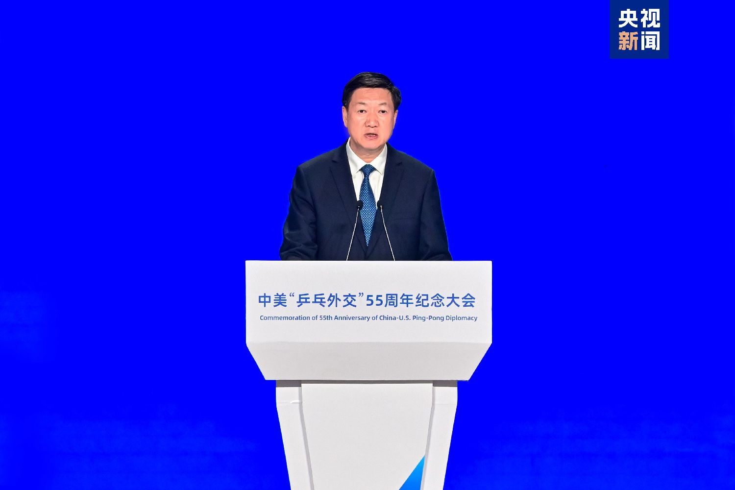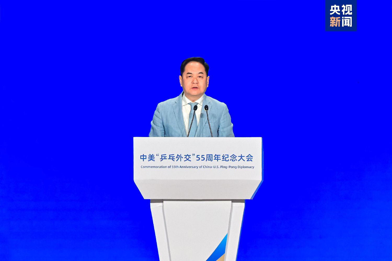 4月10日,中美“乒乓外交”55周年纪念大会在北京首都体育馆举行。大会由中国国家体育总局、中国中央广播电视总台、中国人民对外友好协会共同主办,中国乒乓球协会、美国乒乓球协会、美中青少年学生交流协会、北京市人民对外友好协会协办。纪念大会以“同球共济和合共赢”为主题,重温“小球转动大球”的历史性时刻,赓续中美民间友好传统,推动两国青少年体育人文交流持续深化。来自中美两国政府及机构代表、国际组织代表、中美“乒乓外交”亲历者代表、体育界知名人士、媒体界代表及两国青少年代表等500余位嘉宾出席活动。“中美青少年体育交流系列活动”正式启动。