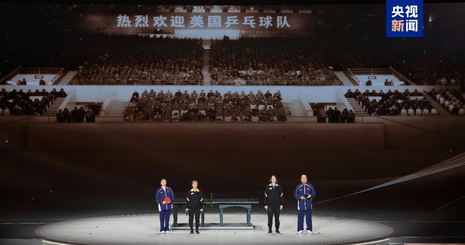 纪念大会现场特别设置了多项“乒乓外交”和中美体育交流沉浸式体验项目。中央广播电视总台运用8K超高清AI修复技术,重现半个多世纪前“乒乓外交”的珍贵历史影像。