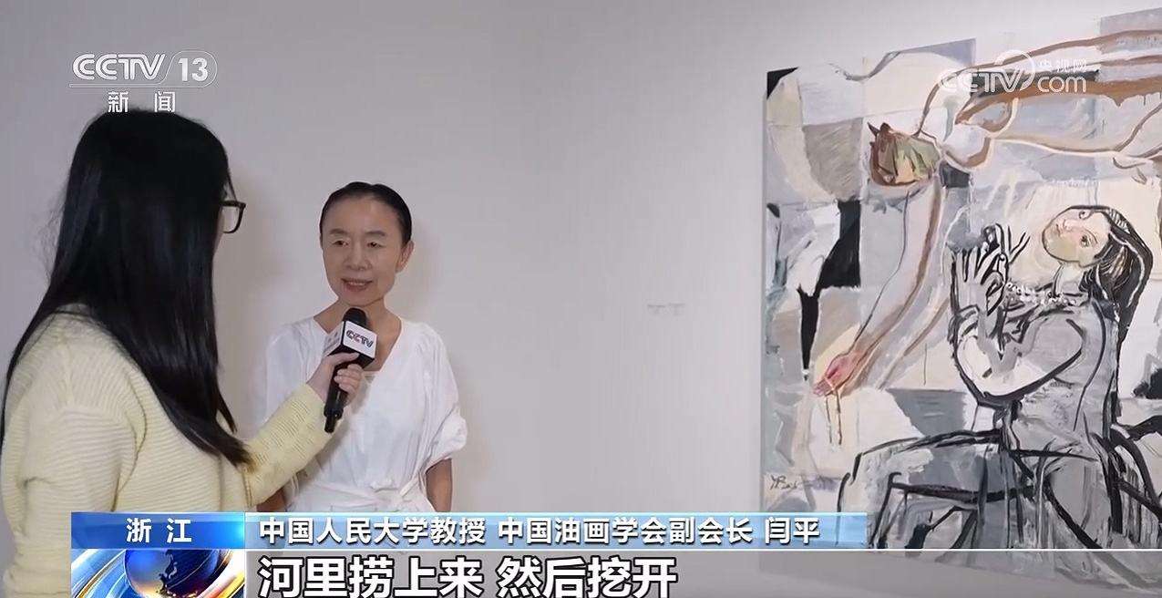 中国人民大学教授、中国油画学会副会长闫平:诸暨是世界珍珠之城,世界有60%的珍珠是出自于诸暨,珍珠的产生过程让我非常非常感动,画了这张作品,这张画就叫《你吸引我》。画面里呈现的就是从河里把蚌捞上来,挖开,然后变成了珍珠,变成了一种文化的象征。