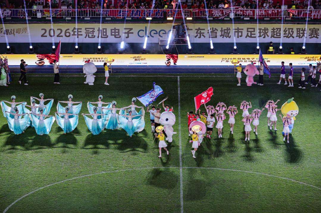 本届粤超开幕式以“一战城名粤战粤勇”为主题,分为三大篇章,运用激光技术、光影投影等现代手段,展现广东足球发展历程与城市体育精神,突出岭南文化特色。开幕式参演人员约800人,现场观众获赠专属观赛大礼包,践行“来看即享”的办赛理念。
