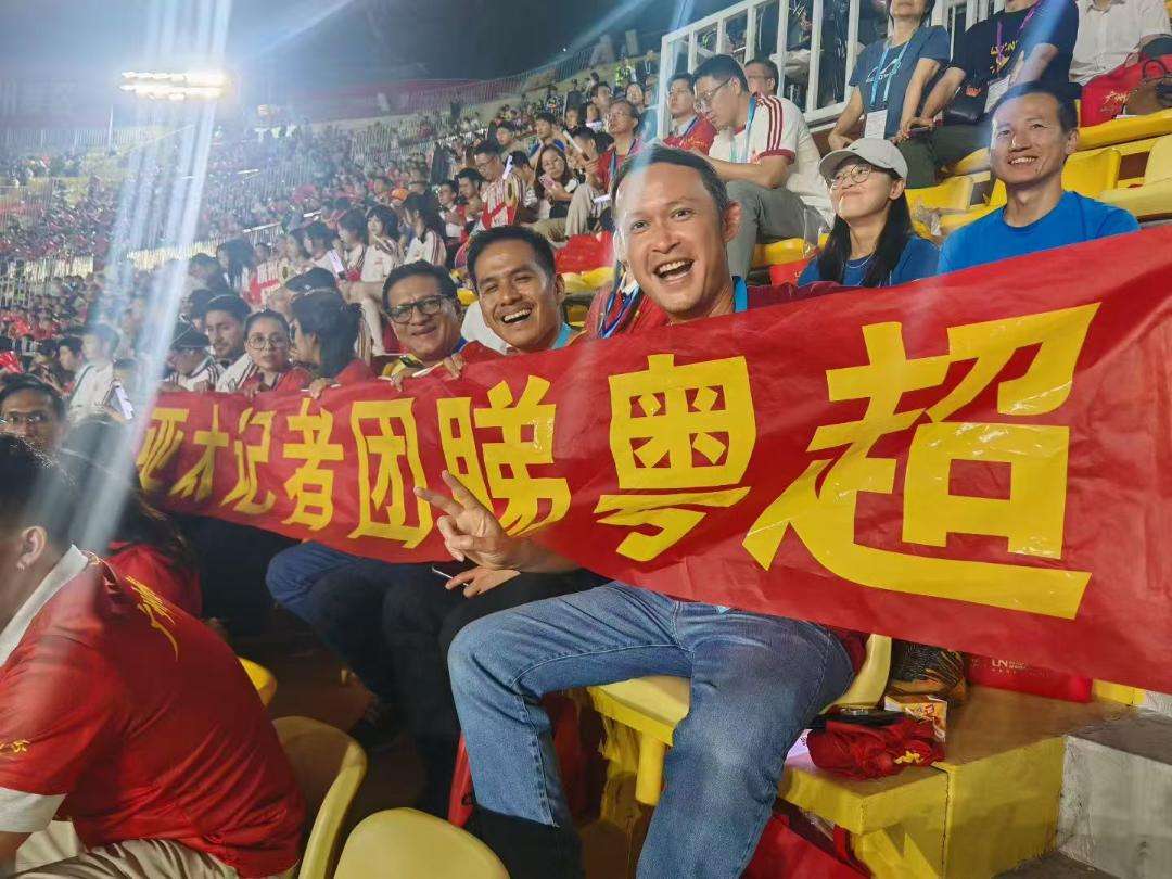 来自泰国、印尼、智利等近20名APEC外媒团代表访穗,在越秀山体育场看粤超,感受足球气氛。