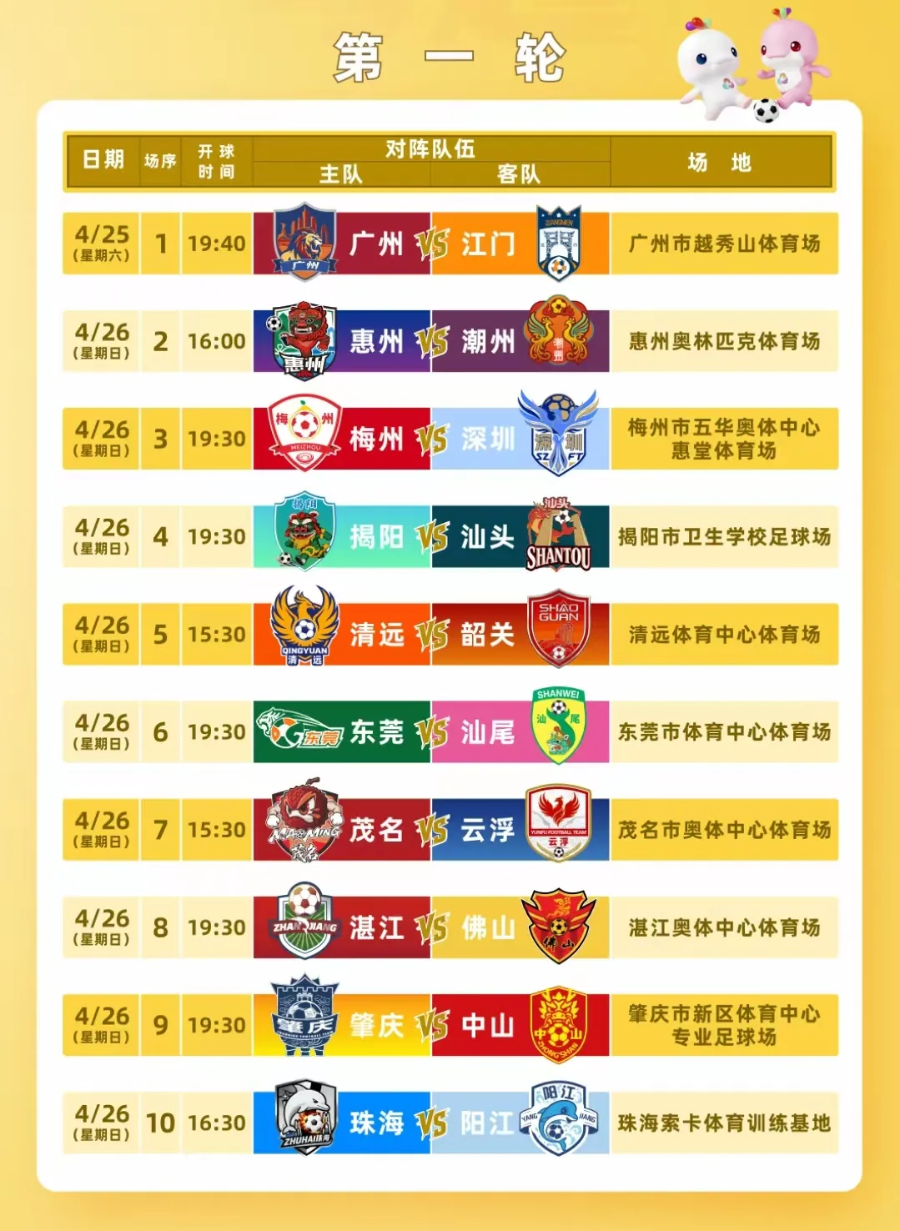 本届粤超联赛覆盖全省21个地级市,以珠江为界划分为东区11支队伍和西区10支队伍,全程采用主客场制,共进行超过120场比赛,赛程横跨7个月,所有比赛安排在周末进行,最大限度兼顾球员工作生活与球迷观赛需求。4月至7月为常规赛阶段,每轮10场比赛均安排在周末举行;淘汰赛于8月下旬开启,冠亚军终极对决将于10月底上演。