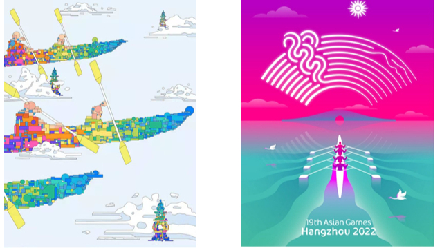 本次发布的海报围绕“历史人文”“智能科技”“体育竞技”“幸福城市”主题,运用手绘、摄影、正负形等艺术手法,结合图形、文字、色彩等元素,以“线性”表达为串联,深入探讨亚运美学和奥林匹克精神,充分契合杭州亚运会定位、目标和办赛理念,传播杭州文化与风情,并与社会、生活、大众产生关联和共鸣,激发广大群众的获得感和参与感,更全面传播主办城市的精神与形象,形成印象深刻的“江南美学”与个性鲜明的“杭州范式”。