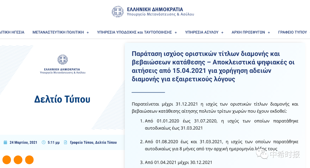 受新冠疫情影响,希腊移民局近日再次调整居留许可的截止期限,根据居留不同到期时间分别进行了延长。此前,希腊当局在2020年5月、7月和12月也曾多次发布相关通告,详情请戳:*2020年5月政府公告;*2020年7月政府公告;*2020年12月政府公告。