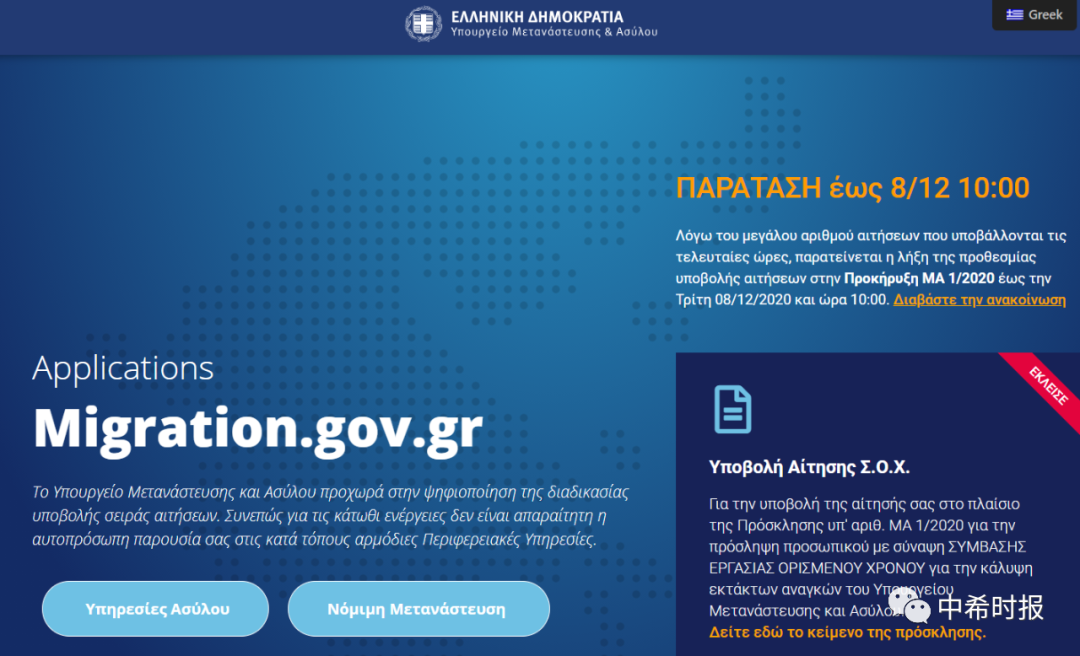 第三国公民如需打印相应的居留到期延长证明,可以通过居留申请预约网站(https://applications.migration.gov.gr/)进行登陆。在你个人的主页面,点击【ΈκδοσηβεβαίωσηςΠαράτασης】,就可以显示相关居留到期延长有效期的证明书,并且可以打印。而这个证明书可以作为额外的证明文件,证明其居留的有效性。