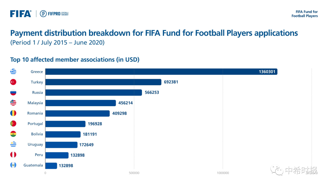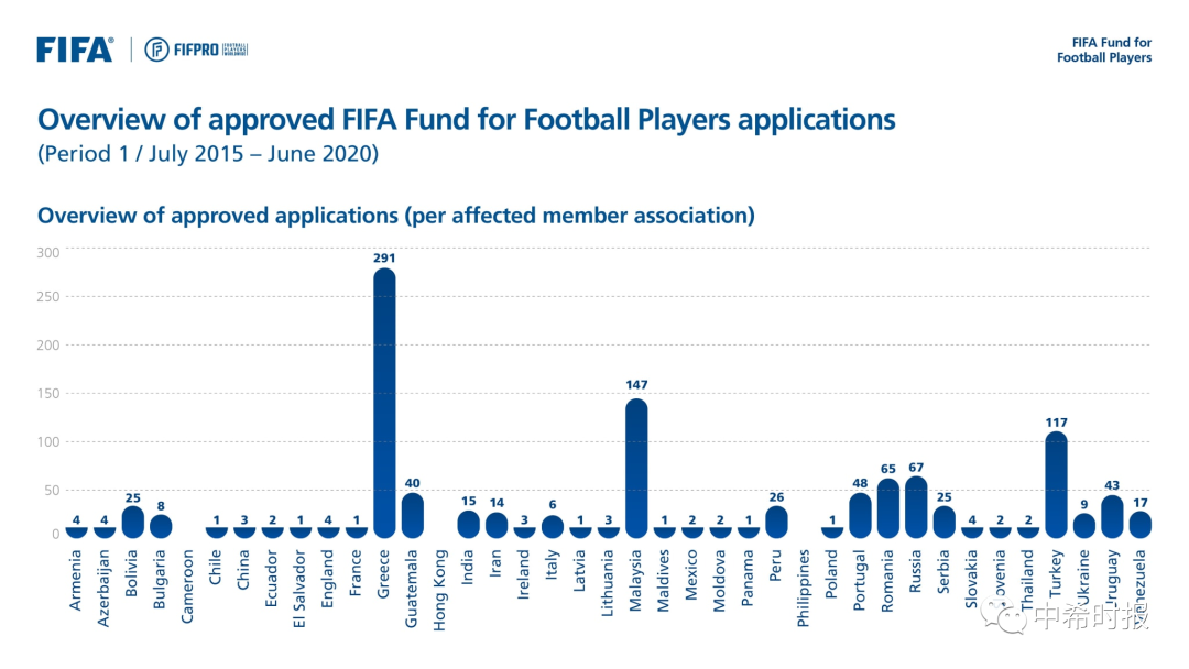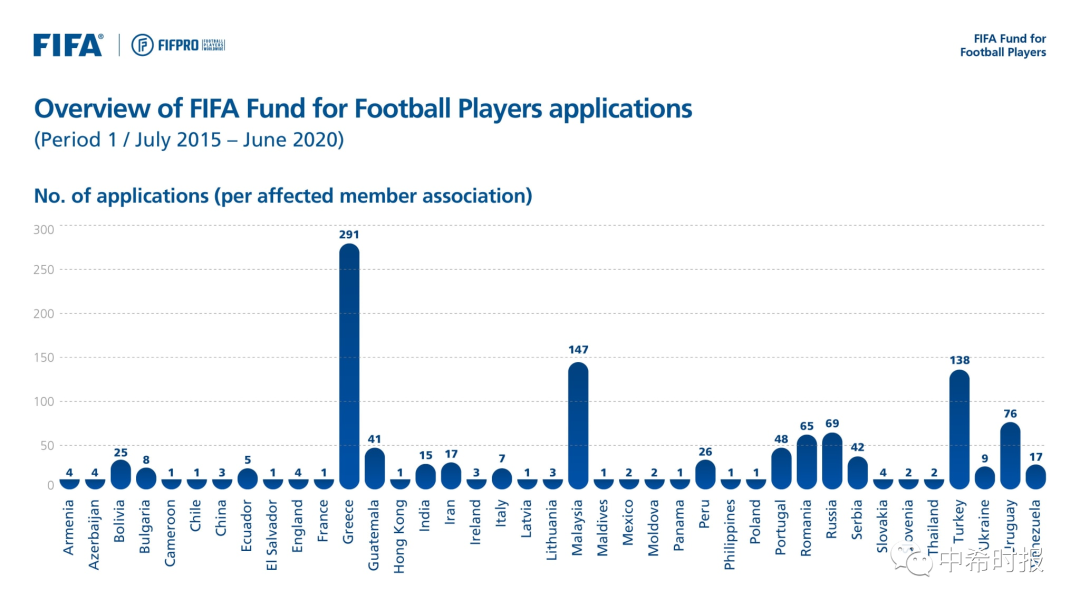 FIFA公布欠薪补助申请情况:希腊291项居首,中国仅3项