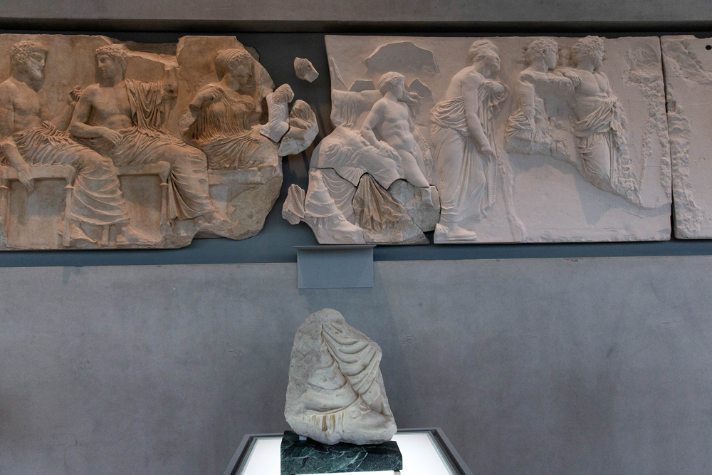原保存于意大利一家博物馆的帕特农神庙石雕碎片在希腊雅典卫城博物馆展出。(图片来源:新华社)