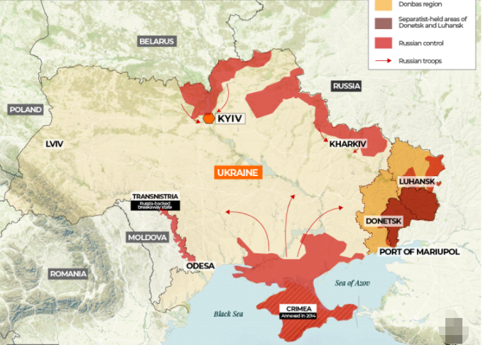 卫星地图显示,俄罗斯军队正在向乌克兰首都基辅行军
