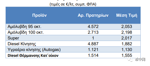 根据希腊液体燃料价格观察站提供的数据,目前希腊95号无铅汽油平均价格为每升2.05欧元,100号汽油平均价格为每升2.19欧元,而柴油为每升1.8欧元。液化石油气已升至每升1.13欧元。