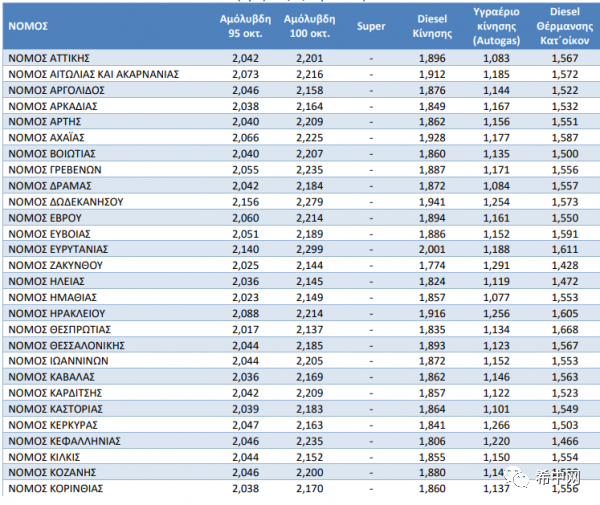 然而,在基克拉泽斯和多德卡尼斯等县市,95号汽油已经连续数周超过2欧元/升。