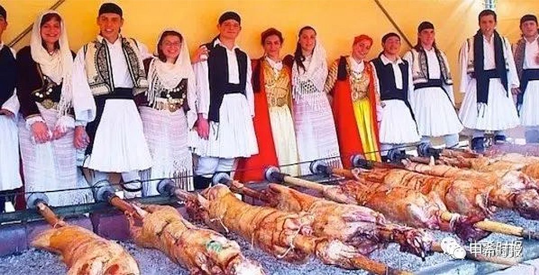 在耶稣复活后的圣周日,人们早早就准备起来,将串在铁钳上的全羊涂抹上调料,放在炭火上转动烧烤,到了日头高照时分,转炉上的全羊开始冒出香喷喷的油脂香味,吱吱冒响,全家老小、亲朋好友围在烤全羊的铁炉旁,诱人的烧烤香气漫漫四溢,飘向天空。而这种习俗据说可以追溯到古希腊时代。据说,古希腊人使用这份香气愉悦神灵,求得神灵保佑。作为世俗凡人享用这份美味的烤肉,感谢神灵的佑护。人们在享用美味烤羊肉的同时,还要拿出家里上好的葡萄酒,美酒美食尽享人间欢乐。这一天,是个喜庆的日子,人们吃饭,聊天,跳舞,狂欢,庆祝耶稣复活,庆祝生活又一次重新开始。