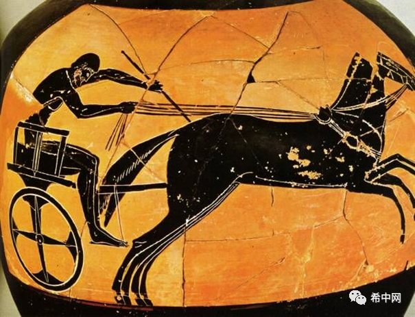 战车比赛是希腊最古老的运动之一——古代陶器的雕刻的艺术内容表明,这个运动可以追溯到公元前1600年至1100年的迈锡尼时期,诗人荷马描述了在伊利亚特的帕特罗克洛斯葬礼上举行的战车比赛。公元前680年首次参加奥运会,车手参加了四驱和两驱的战车比赛。根据米勒的说法,比赛包括围绕竞技场或赛马场跑12圈,然后在相反方向跑12圈。实际长度因活动举行地点而异。战车比赛是一项贵族运动,战马和战车的主人,他们派出骑手以他们的名义出征比赛,以炫耀他们的地位和财富。赛马场在椭圆形的中心没有分隔线,有时会发生战车与马队的正面碰撞,造成伤亡和踩踏,因此这项运动充满危险和刺激。