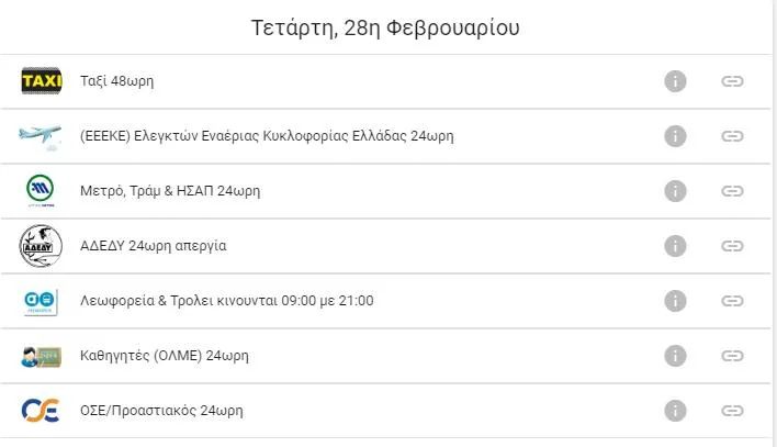 希腊最大的公共部门工会“希腊全国公职协会”(ADEDY)呼吁其成员于2月28日(周三)举行24小时全国大罢工。此外,出租车、公共交通和空管人员也将参加罢工和示威活动。