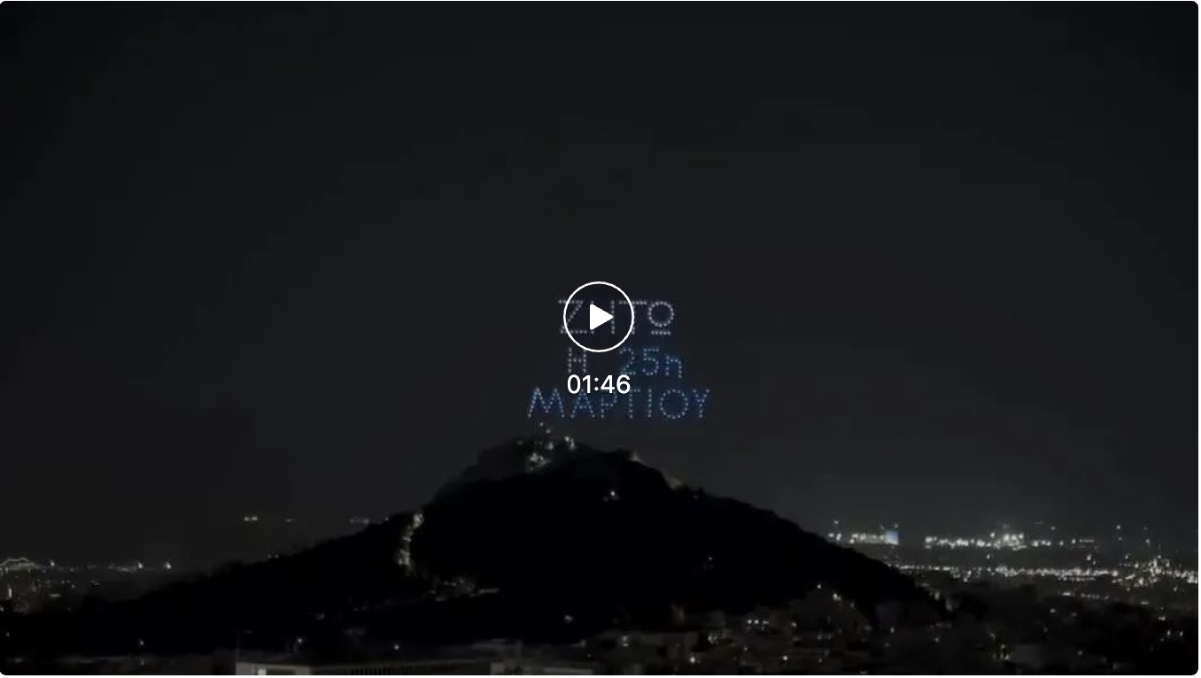 除了“重头戏”阅兵游行外,为了庆祝今年的“独立日”,3月24日一场盛大的无人机表演在雅典举行。参加表演的250架无人机通过协调照明、交替的3D人物、在空中拼出了希腊国旗、总统卫队、军舰等图案。为节日的到来烘托出了最热烈的气氛。(蔡玲)图源:网络