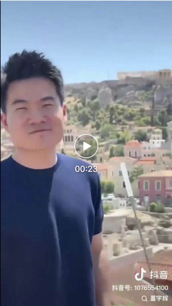 除了周杰伦外,在网络上备受欢迎的董宇辉也被拍到穿着拖鞋和衬衫出现在希腊,似在录制节目。董宇辉还大方在抖音平台上自己发布了视频。视频的背景是雅典卫城,备注的文字是“认识你自己”!视频发布一小时,点赞就超过16万。