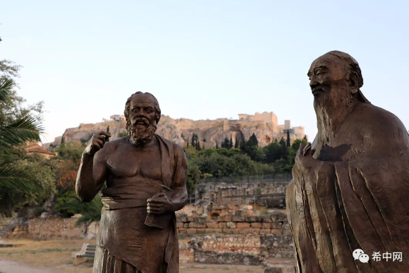 卫城山下,明月映照着孔子和苏格拉底两位中希方先贤的塑像。曾两次访问中国的希腊文学巨匠卡赞扎基斯有一句名言,“苏格拉底和孔子是人类的两张面具,面具之下是同一张人类理性的面孔”。“神遇——孔子与苏格拉底的对话”雕塑作品,意在中国和希腊这两个最古老文明间建立起一种对话。在这个巨大“文化参照系”中产生了东方和西方人类文明精神的“感生电流”,使得雅典和北京之间建立新的对话道路。这样的对话,也是世界未来新的希望、新的可能。对于当今世界消除不同文明之间的偏见、误解和冲突,我们在这里恭请公元前五百年前后的中国、希腊“轴心时代”的先贤们跨越千山万水进行对话,促进世界和平与安全。这一切,都有着深刻的现实意义。