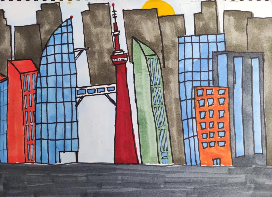我的灵感来自那些小城可是我画上的中间两个高楼大厦灵感是来自低保和上海的只是换了一下造型。