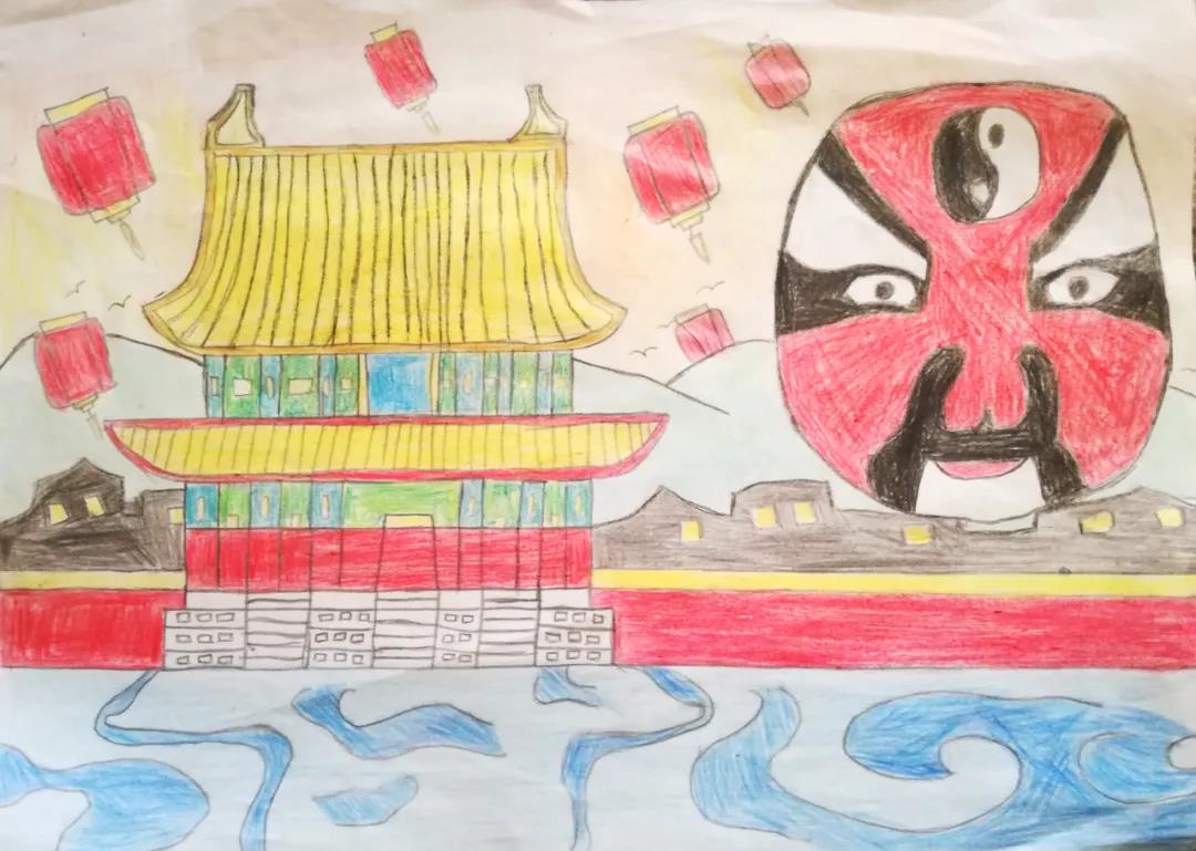 这幅画的灵感来自于中国北京故宫的魅力建筑和北京的魅力城市,融入我国传统的灯笼和传统京剧脸谱元素。