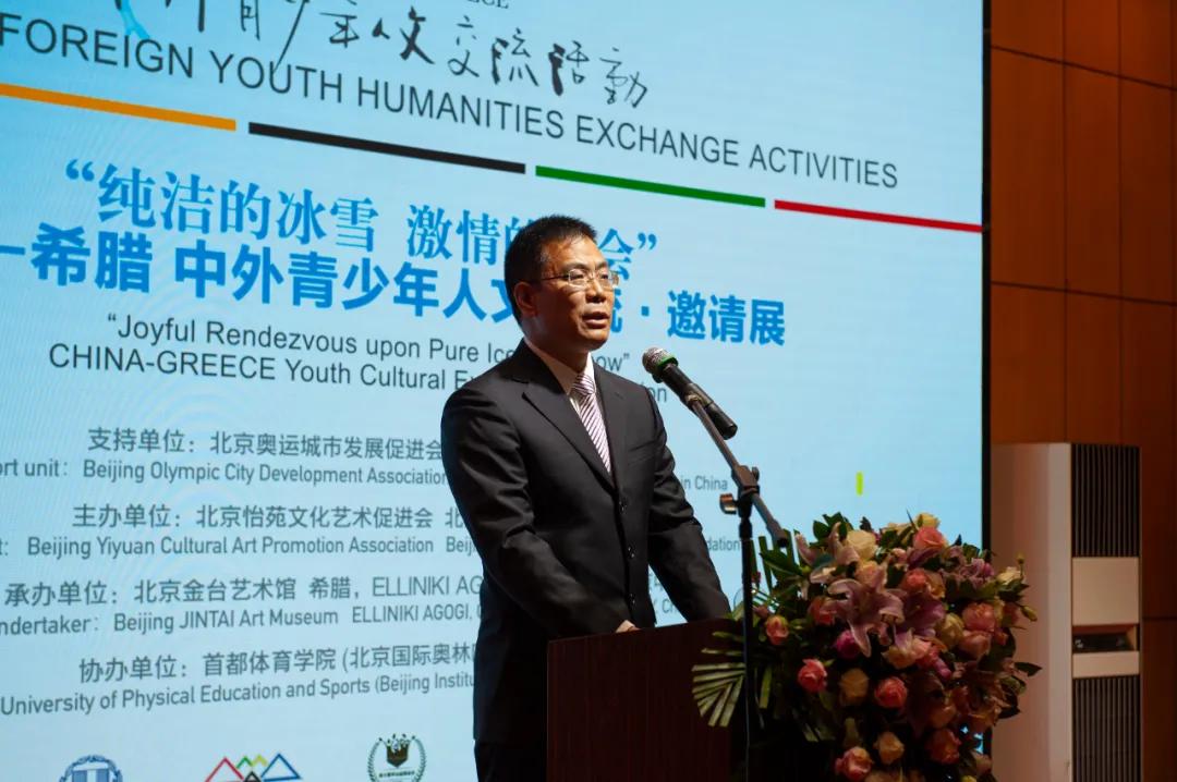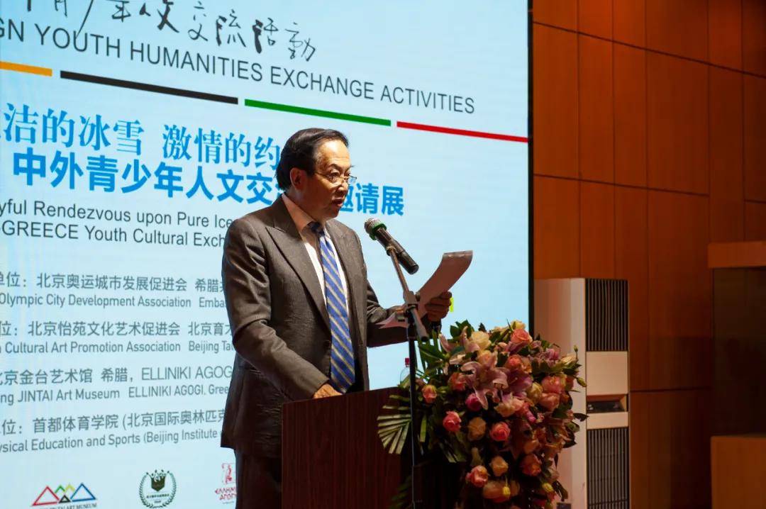 北京奥运城市发展促进会副秘书长汲传排的致词:非常高兴参加“‘纯洁的冰雪激情的约会’中国·希腊中外青少年人文交流邀请展”开幕式。受北京奥运城市发展促进会秘书长付晓辉先生委托,我谨代表北京奥运城市发展促进会,向展览的开幕表示热烈祝贺,向出席仪式的中外来宾和青少年朋友表示诚挚的欢迎!