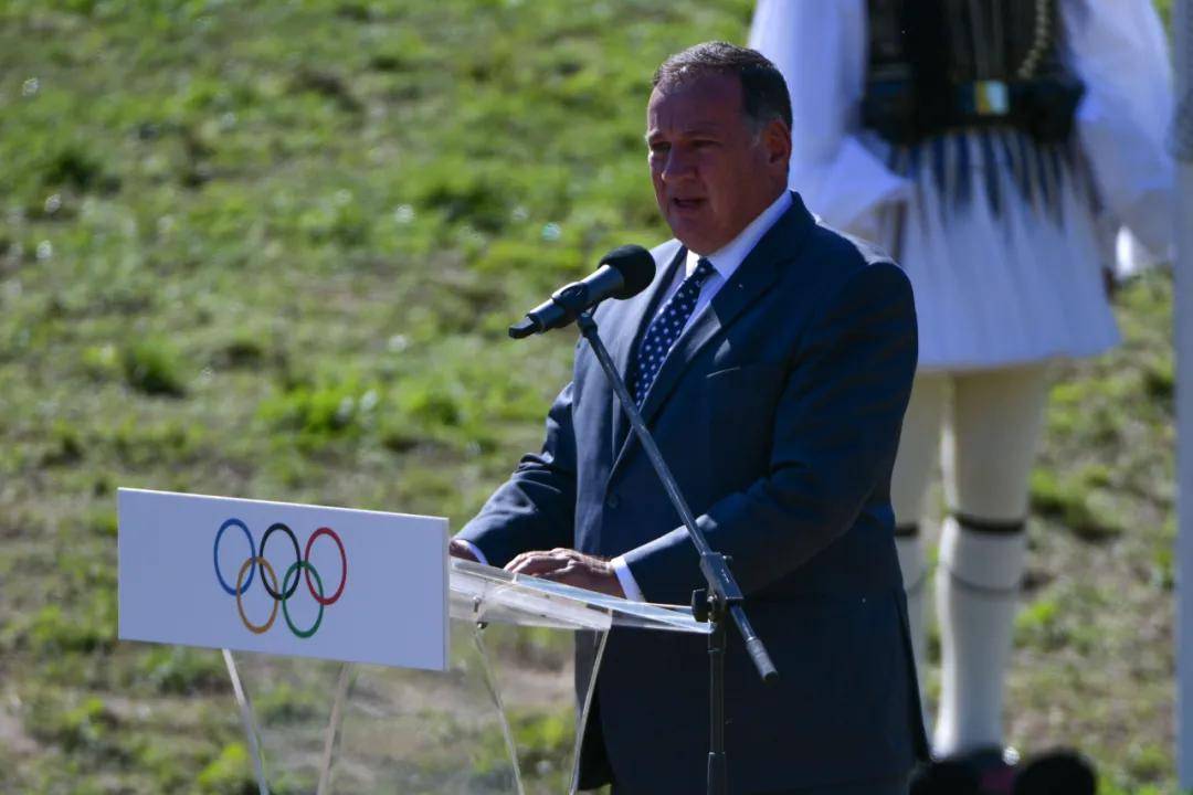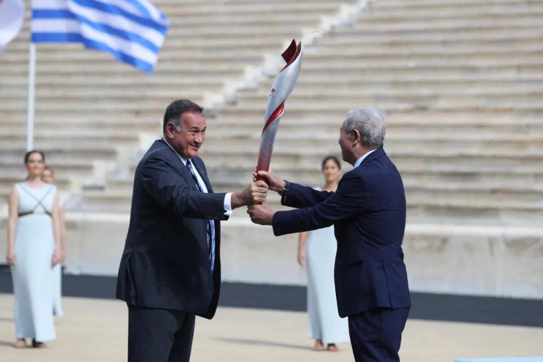 希腊奥组委主席斯派罗斯·卡普拉洛斯(Spyros Kapralos)先生,在致辞中提到“从古奥林匹亚启程的奥运圣火将在北京点燃,象征着第24届奥运会拉开序幕。”他还预祝所有运动员们取得成功。