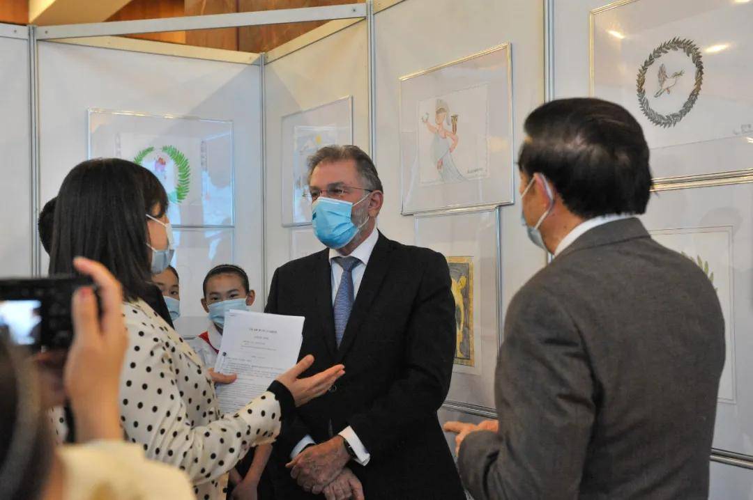 希腊大使乔治·伊利奥普洛斯(Georgios Iliopoulos)先生的致辞:今天能够在这场精彩的活动上发表致辞,我感到十分荣幸。来自希腊和中国的青少年通过两国的古代文学来进行“对话”希中两大文明通过各自的语言以及语言背后传递的概念和反映的理念,刻画了我们今天的思想与生活。同时,两国青少年发扬奥林匹亚希腊精神中“对话”这个重要方面,以绘画作品展开对话。今天,我们两国的青少年以及两国之间比以往走得更近。尽管受疫情影响,本次活动需线上举行,但这也是两国青少年第一次交谈并产生共鸣,提醒我们希中两大文明共同秉持的价值观和理念。