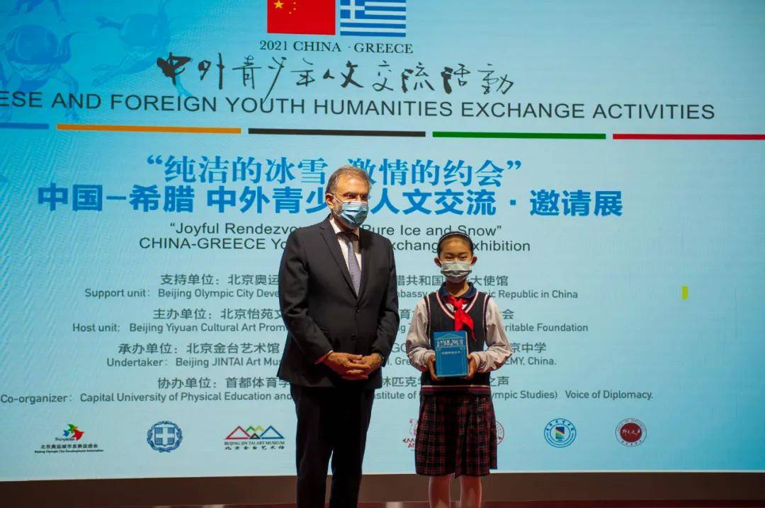 中华人民共和国驻希腊大使肖军正先生的致辞:在北京2022年冬奥会即将到来之际,北京中学和“希腊教育”两校学生通过线上方式相聚,共同举办奥林匹克大课堂,以朗读历史和哲学名篇、绘作体育运动画卷等形式共同迎接北京冬奥会,别开生面,意趣盎然,相信一定会在孩子们的心里种下一粒奥林匹克精神的种子!我谨代表中国驻希腊使馆,对“纯洁的冰雪,激情的约会”中希青少年人文交流活动的举办表示热烈祝贺!向精心筹备此次活动的主办方,特别是马诺丽都主任表示衷心感谢!中国和希腊作为东西方文明的杰出代表,在人类文明发展史上交相辉映,创造了辉煌灿烂的成就。希腊是奥林匹克运动的诞生地,中国是奥林匹克事业的积极推动者,中希开展奥运合作,为弘扬奥运精神、丰富奥运文化提供了新的价值元素,为传播奥运理念、促进世界和平贡献了新的文明力量。从2004年雅典夏季奥运会到2008年北京夏季奥运会,再到2022年北京冬季奥运会,奥运纽带将中希两大文明古国紧密相连,在弘扬奥林匹克精神的征途上留下了共同的印记。一个多月前,在希方特别是希腊奥委会的大力支持下,北京冬奥会火种采集和交接仪式在希腊成功举行,中希奥运合作再添硕果。体育运动不仅可以强健体魄,更能健全精神,磨砺品格。100多年前,青少年时期的毛泽东就对国民体育发出“文明其精神,野蛮其体魄”的呼唤,认为体育运动可以“寓道德之舍,载知识之车”。同样是100多年前,现代奥林匹克运动的创始人顾拜旦曾讲过:“奥林匹克运动能建立一所培养情操高尚与心灵纯洁的学校。”中希青少年一起关注奥运、体验奥运、分享奥运,就是要培养挑战自我、坚毅果敢、自信进取、勇往直前的人生性格,就是要历练公平竞争、团结合作、诚实担当、乐观友善的社会品格,成为对国家发展、社会进步和人类正义有所贡献的一员。2022年北京冬奥会的口号是“一起向未来”,传递出同舟共济、守望相助,携手走向未来的美好愿望。今天的活动以冬奥为媒,架起了中希青少年“一起向未来”的友谊之桥。希望同学们在活动中增进彼此了解,加深相互认知,互学互鉴,共同成长,以实际行动传承中希传统友谊,传承奥林匹克精神。我相信,通过今天的活动,在同学们的心田里,会中下希望的种子,“奥运合作让中希友好变得更有活力”;我相信,通过今天的活动,在同学们的思想中会坚定信仰的力量,“体育运动让世界变得更美好!