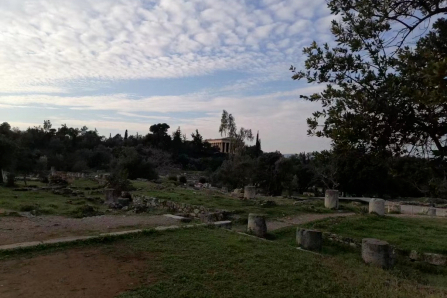 在斐得罗口中,苏格拉底虽未离开雅典却像个游客,但苏格拉底热爱知识,热爱着城邦中具体的人。因为苏格拉底对雅典的集市感到熟悉且自在,我们也就有可能在集市的遗迹中追随他的脚步,并以理想的形式重建他曾经生活的环境,在这个环境里,他实践了他所宣扬的“未经检验的生活是不值得过的”(《苏格拉底的申辩》38a)。