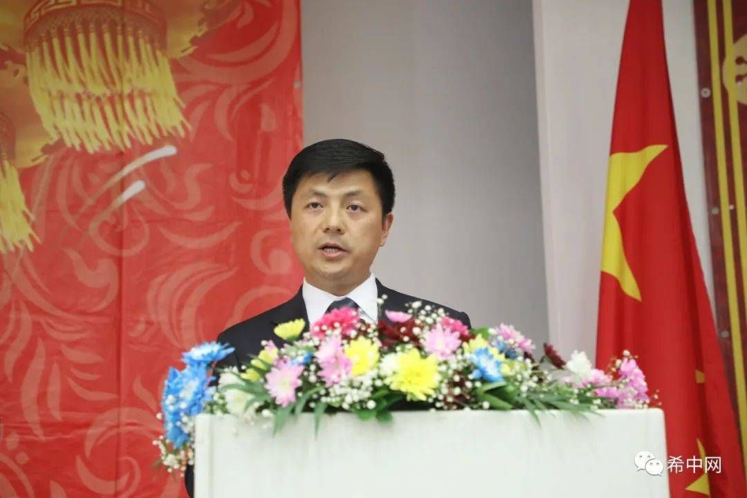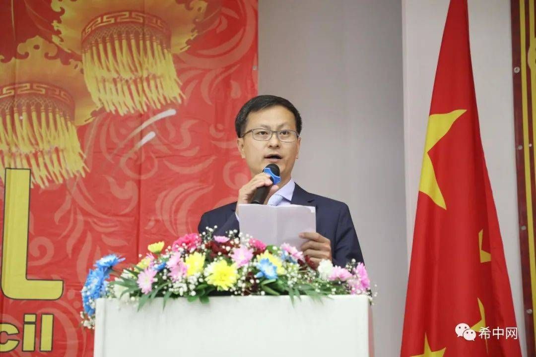 在庄严的中希两国国歌声中,典礼正式拉开序幕。郭晓宇主任在致辞中代表中国驻希腊大使肖军正对希腊闽商总商会第二届理事会成功换届表示祝贺。他说,希腊闽商总商会自2019年成立以来,广泛团结希腊北部侨胞,为团结服务侨胞、增进中希交往作出积极贡献。在疫情期间,商会为保障侨胞健康不懈努力,为支持祖国家乡抗击疫情、中希两国抗疫合作作出了重要贡献。商会与中马其顿省政府和塞萨洛尼基市政府均保持良好关系,助力中希地方交流与合作。努力为侨胞办实事,多次协助使馆在萨洛尼卡现场办公,竭力为侨胞排忧解难。