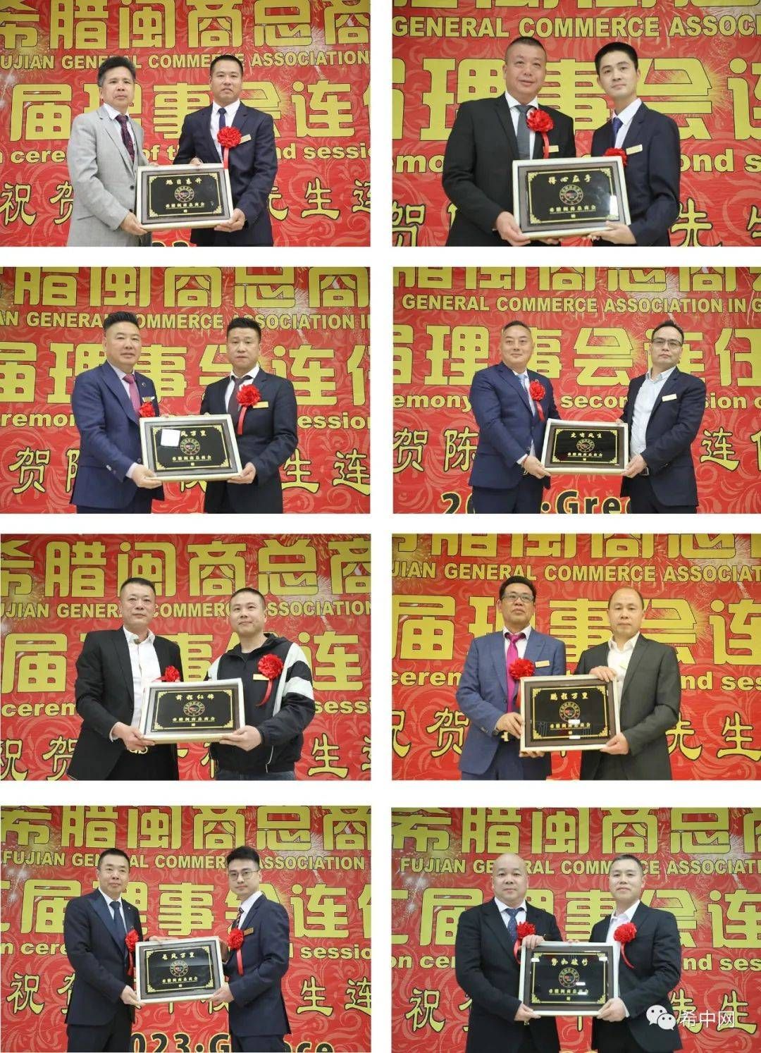 当地时间2023年5月1日,希腊闽商总商会第二届理事会换届连任典礼在希腊第二大城市塞萨洛尼基市Capsis酒店隆重举行。中国驻希腊使馆办公室主任郭晓宇、警务联络官丁振,中马其顿省副省长亚利山德罗斯·萨诺斯(Alexandros Thanos),塞萨洛尼基警察总局局长赫里斯托斯·布鲁巴斯(Christos Mpouloumpasi),希腊政府、商界和警界官员代表、旅希侨团代表、欧洲兄弟侨团代表以及中希各界友好人士500余人参加了当天庆典大会。陈千枝先生连任新一任会长。