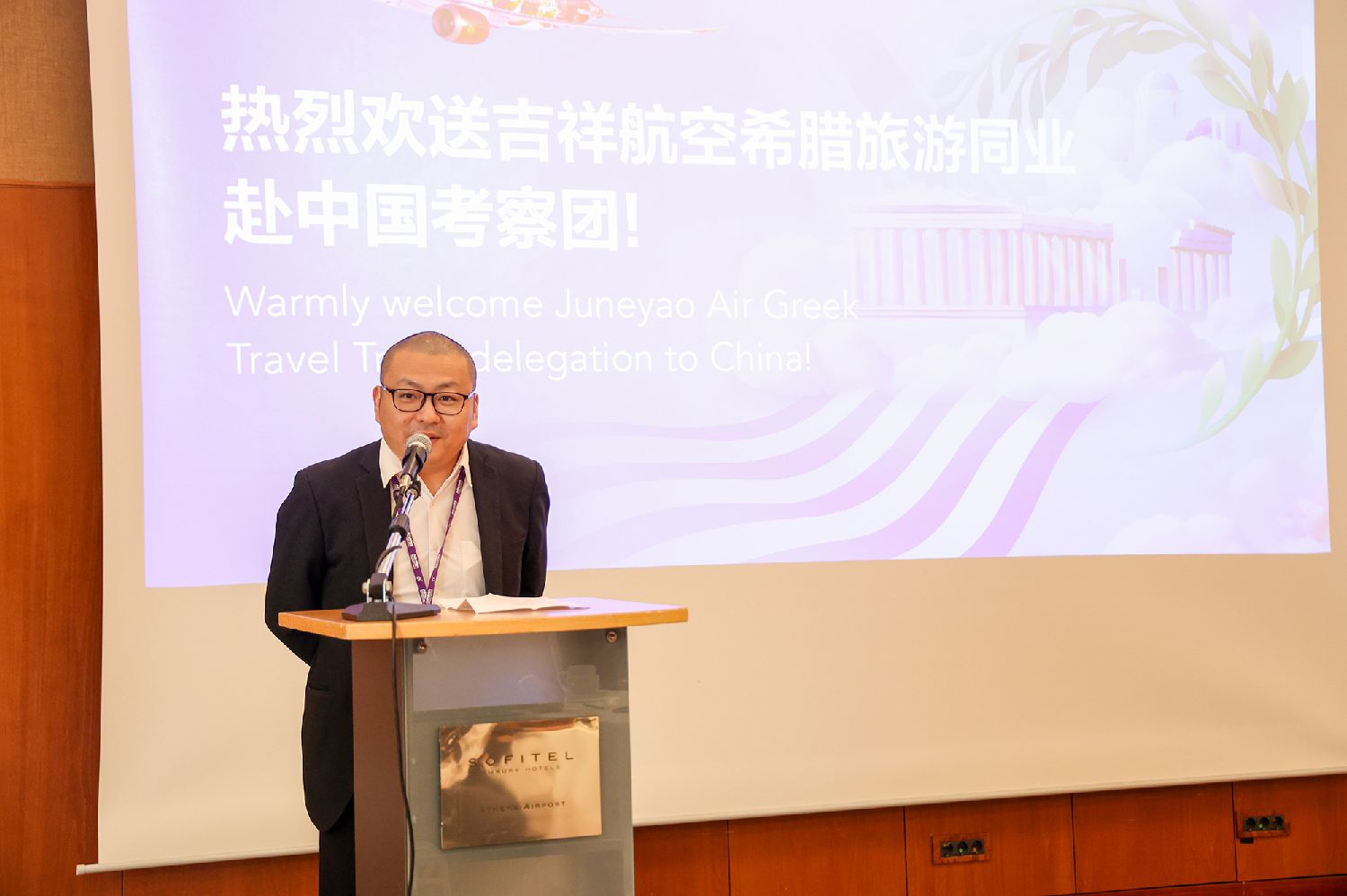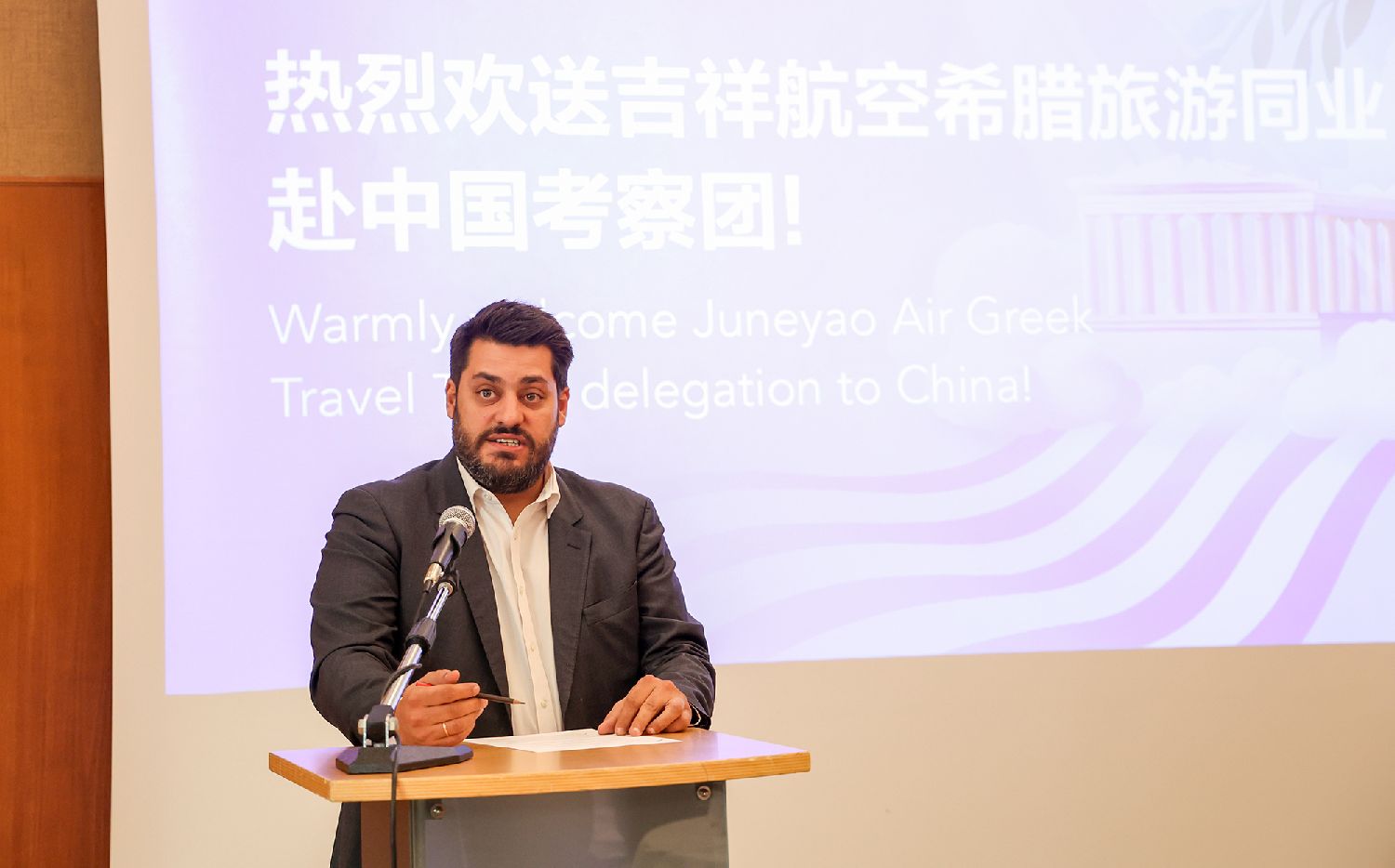吉祥航空希腊营业部总经理嵇昊介绍了考察团的行程安排和目标,并表达了对中希旅游合作的美好愿景。希腊旅行社BLOOM TRAVEL的总经理THEO先生和团组代表KAVVADI女士也分享了他们对考察活动的期待与展望。