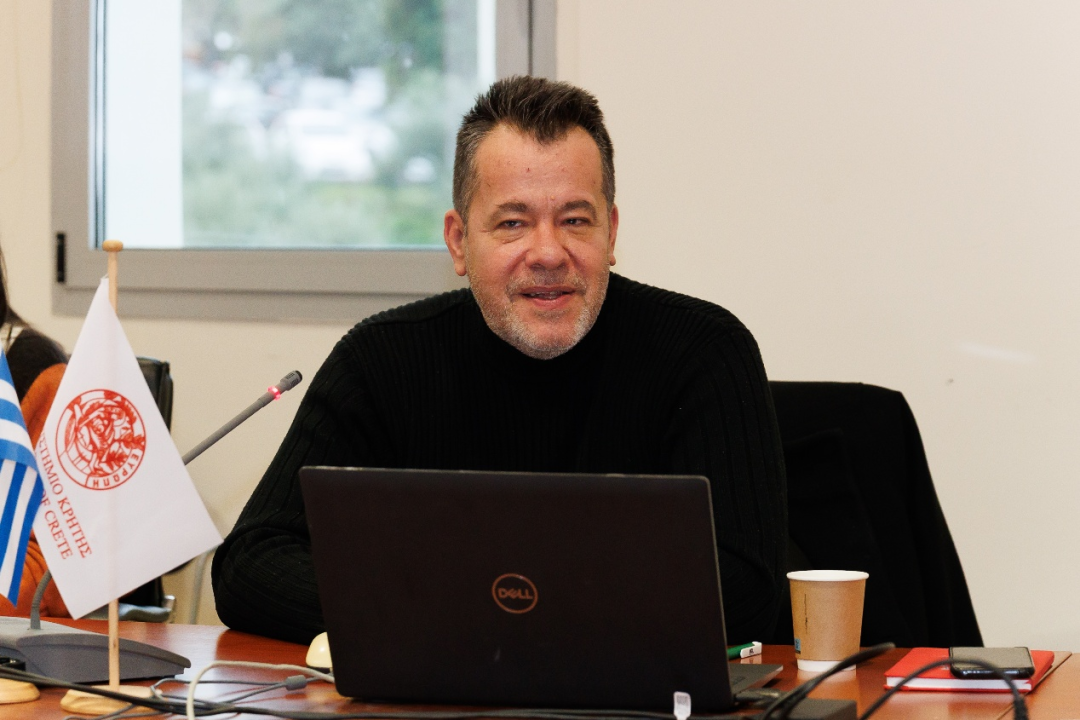 克里特大学政治研究与文献中心主任尼科斯·帕帕达吉斯教授(Nikos Papadakis)与国际理论与安全政策副教授乔治亚·迪马里(Georgia Dimari)以“十字路口的欧盟移民政策”为题发表演讲,剖析了当前欧盟在移民治理中面临的共识难达、权利保障不足等困境,并提出政策科学化、平衡安全与人文关怀等建议。学生代表阿丽斯塔·帕帕多普卢(Ariesta Papadopoulou)从政治传播角度对媒介赋权议题进行剖析,分享了相关见解。本次座谈会由克里特大学国际处处长尤金妮娅·斯孔塔基(Evgenia Skountaki)主持。