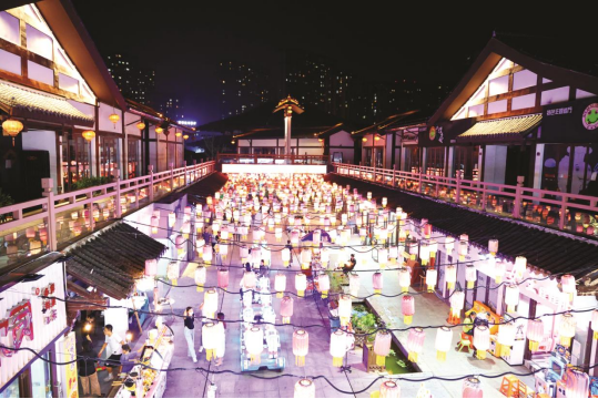 淮北市隋唐运河古镇流光溢彩,夜景美如画。周方玲/摄